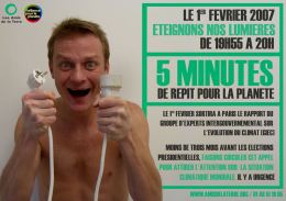 Eteignons l’éclairage et les appareils électriques pendant 5 minutes pour montrer symboliquement au monde politique l’importance que nous accordons à la problématique du réchauffement global.
